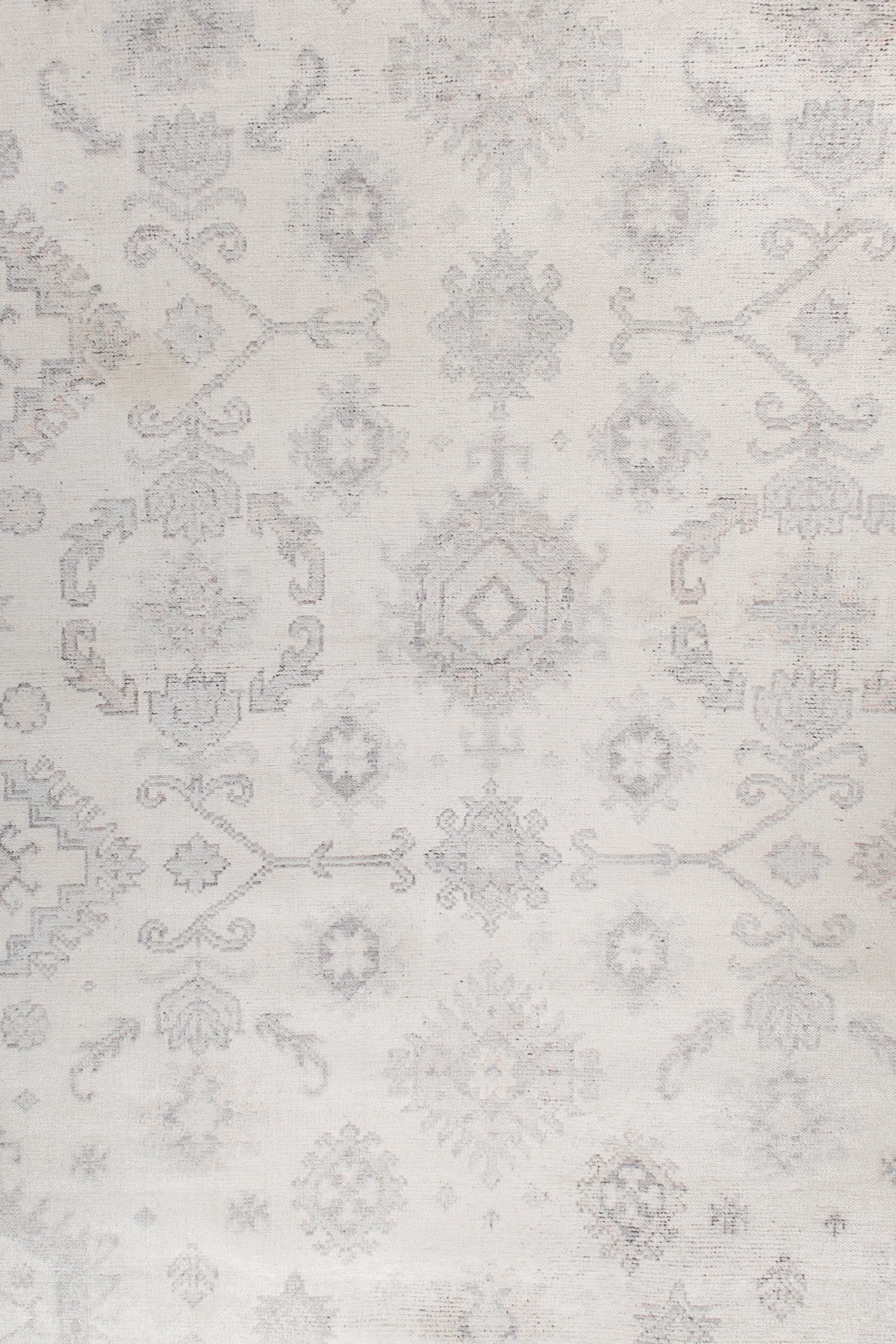 Color Palette:Inspired by classic artistry, this rug in forever Steel Gray and Cyan Blue combines grace with symmetry. It bridges tradition and modernity, grounding a room with quiet elegance.