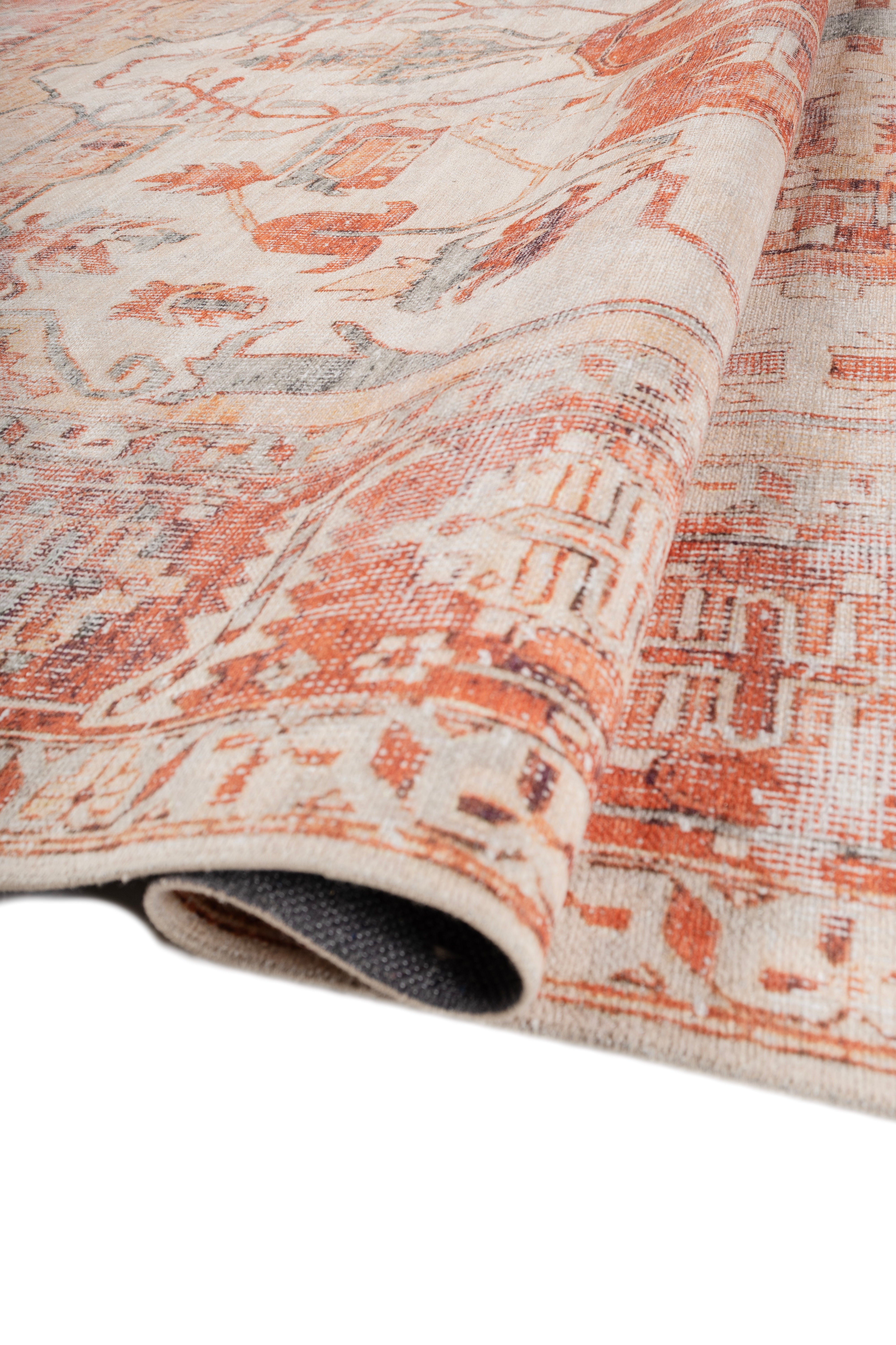 Color Palette:Inspired by classic artistry, this rug in forever Apricot Orange and Treetop combines grace with symmetry. It bridges tradition and modernity, grounding a room with quiet elegance.