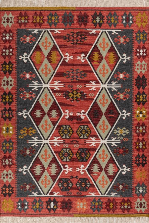 Bring bold character and heritage-inspired design into your space with our striking Kavari Red Cotton Dhurrie Rug. The geometric tribal pattern in rich red and earthy tones adds depth and visual energy. A statement piece that effortlessly elevates both modern and traditional interiors.