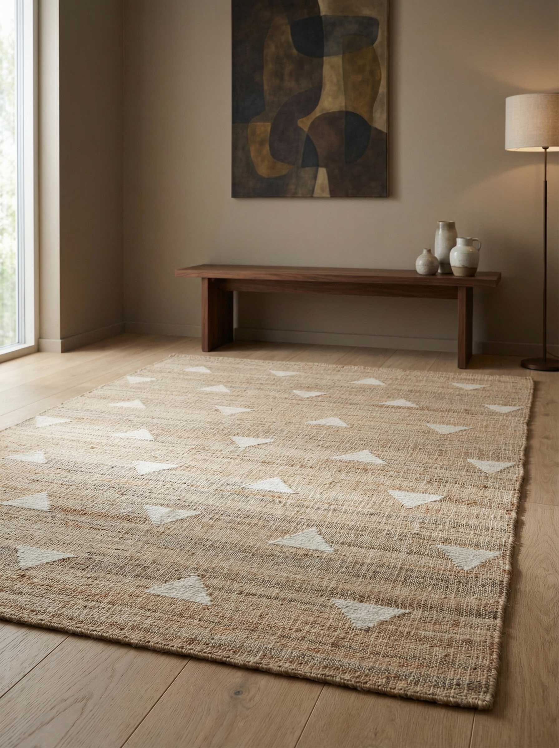 Pile Height: A low-profile Dhurrie weave that sits neatly under doors and makes everyday cleaning simple.