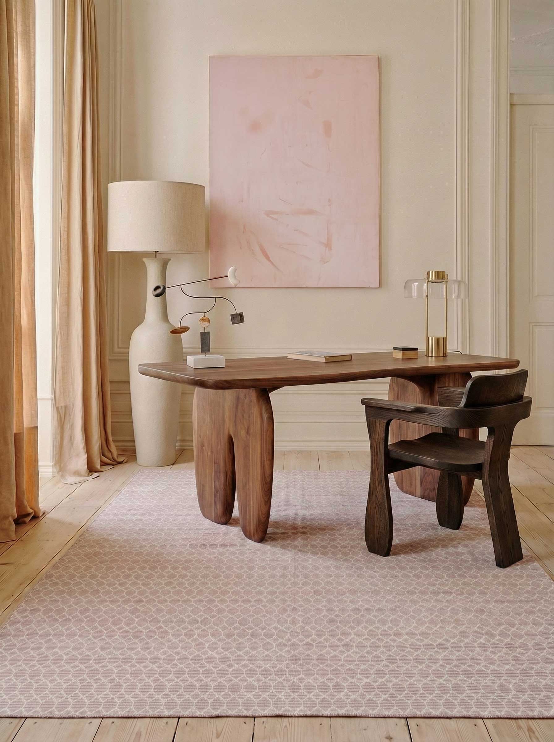 Color Palette:Inspired by classic artistry, this rug in forever White and Medium Rose balances warmth and contrast, grounding a room with quiet elegance.