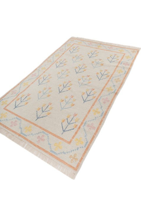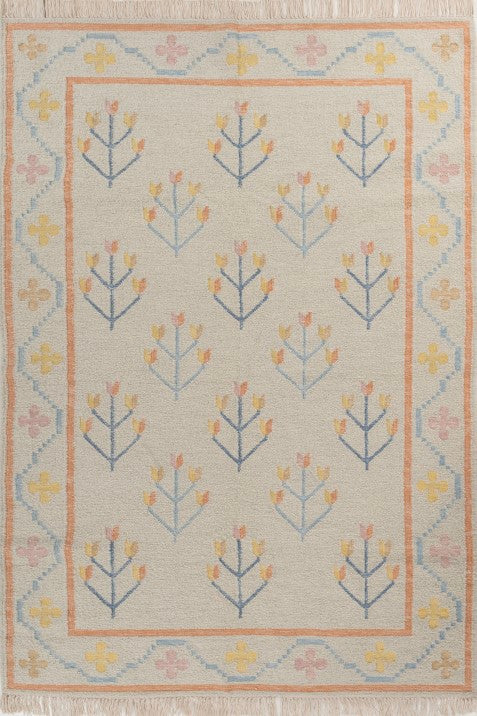 Add a soft vintage touch with the Elaris large area rug, featuring an ivory base with delicate scattered sprig motifs and a subtle bordered design. A light vintage style rug that blends effortlessly into modern Indian interiors.