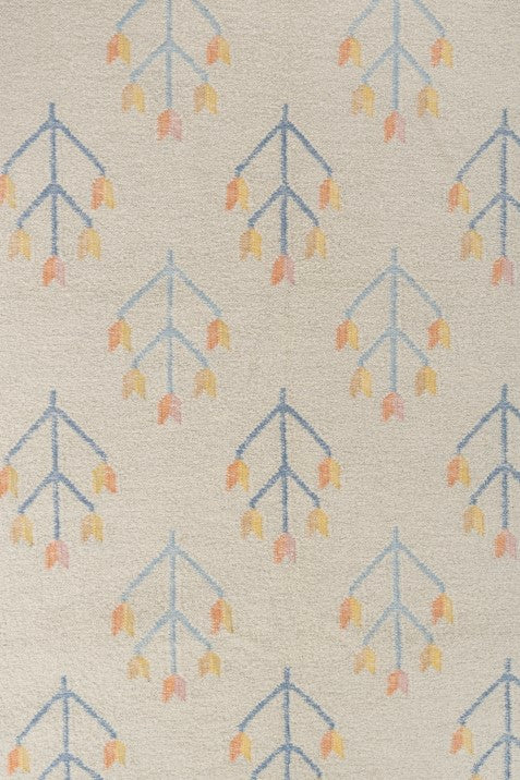 - Ivory rug with multicolor sprig pattern and a refined bordered layout.