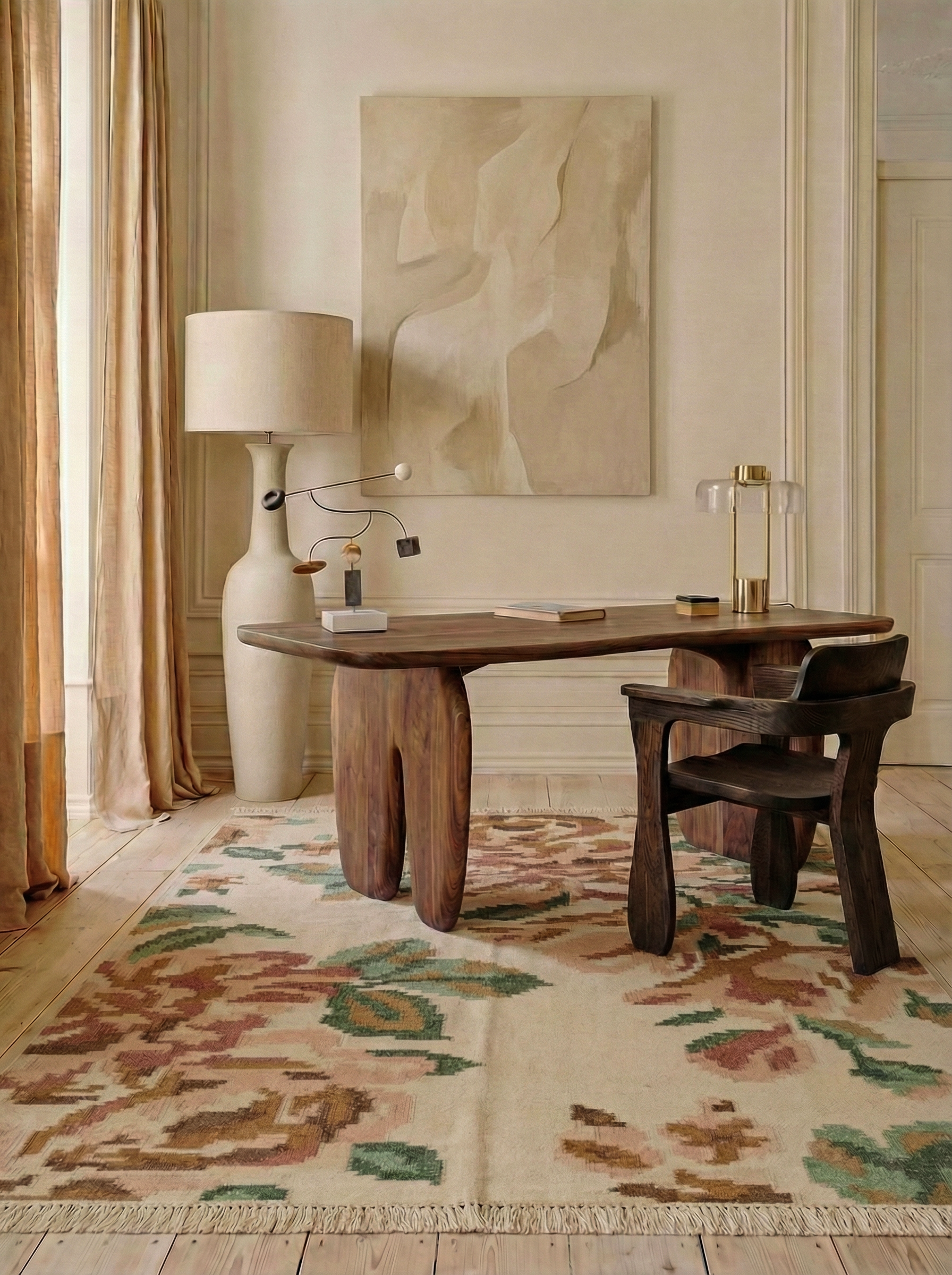 Color Palette:Inspired by classic artistry, this rug in forever Bright Yellow and Ashwood balances warmth and contrast, grounding a room with quiet elegance.